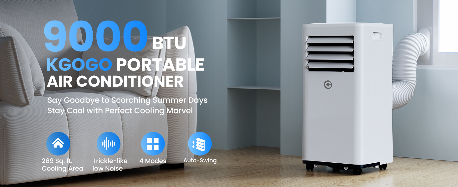 - 4️⃣【4-in-1 Multiple Functions】KGOGO air conditioner is designed specially to improve indoor air and offer year-round comfort. Beat the heat with our versatile air conditioner boasting four modes tailored for your comfort. From chilling in air conditioner mode to enjoying gentle breezes or strong cool winds in fan mode, and maintaining optimal humidity at 40%-60% RH with the dehumidifier mode ( This mode only works when the temperature is above 15℃ or the humidity is below 85% . ), and enjoying a deep ultra-quiet childlike sleep with light off and lower noise under our sleep mode, our air conditioner has you covered.