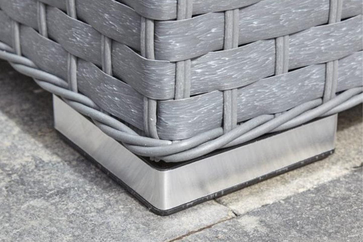 Whether you place it by the pool, out on the lawn, on the patio or anywhere else in your garden, this fantastic 8-seater rattan garden sofa set will look sensational. It comes with a gloriously spacious corner sofa that will bring groups of friends and family close together during celebrations, along with two footstools, glass-topped coffee table and a comfortable seat and back cushions. This rattan garden sofa set ticks all the right boxes when it comes to making sure everyone has their own space and remains relaxed for hours on end. If only grey rattan garden furniture will do for you, this is a set that has to be close to the top of your list.