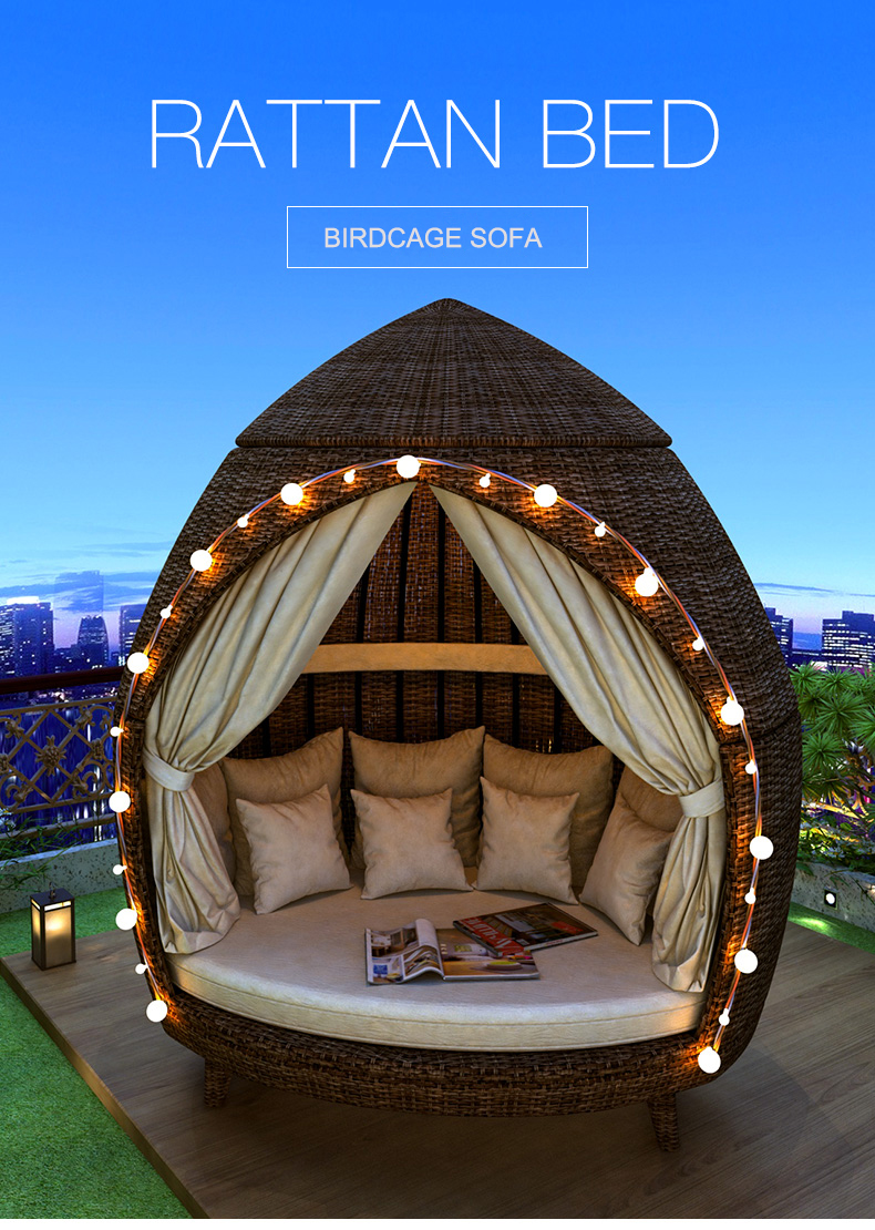 Vacation beach bed rattan bed terrace sun bed outdoor leisure birdcage sofa outdoor courtyard sun lounger