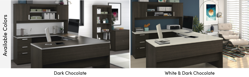 Home / 【Furniture】Bestar Ridgeley U-Shaped Executive Desk with Pedestal and Hutch, 65W, White Chocolate